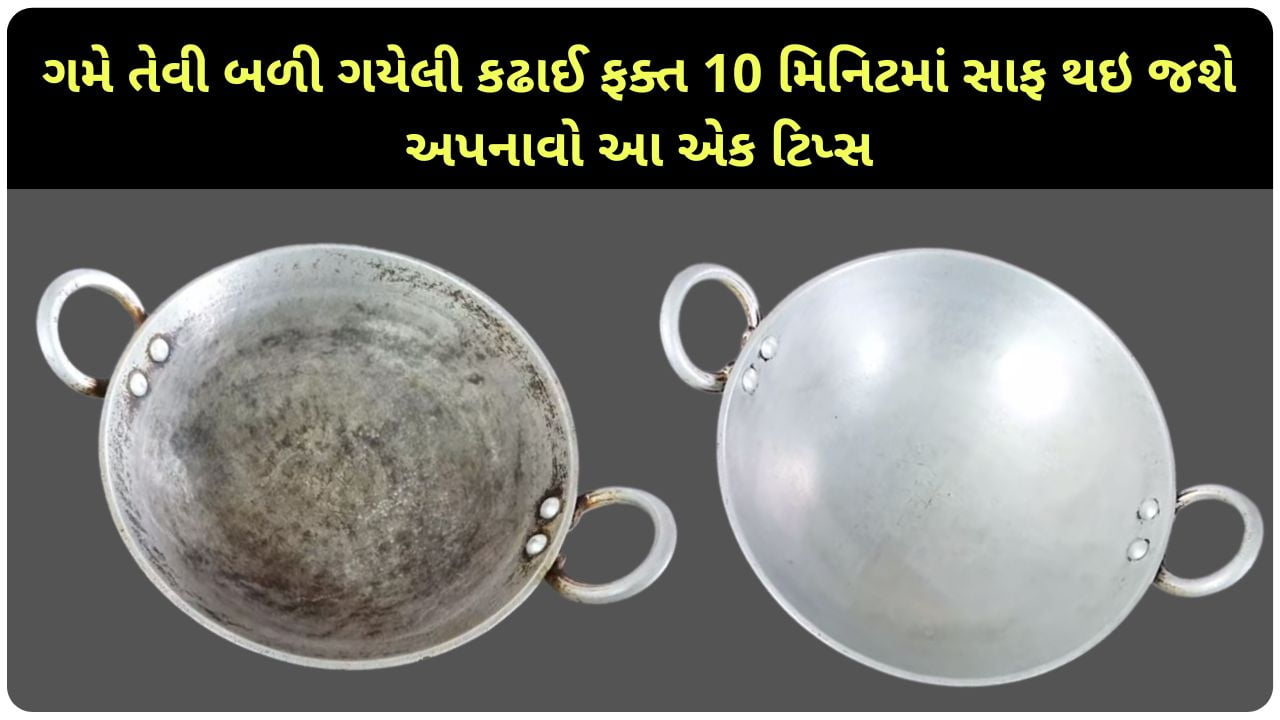 આ માટે સૌથી પહેલા કઢાઈમાં બળી ગયેલી પડને દૂર કરીને સાફ કરો. હવે એક વાટકીમાં મીઠું, થોડું પાણી અને લીંબુનો રસ ઉમેરીને સોલ્યુશન બનાવો અને ટૂથબ્રશથી કઢાઇની બળી ગયેલી જગ્યા પર લગાવો. પછી બ્રશથી હળવા હાથે સ્ક્રબ કરીને 10 મિનિટ માટે રહેવા દો.