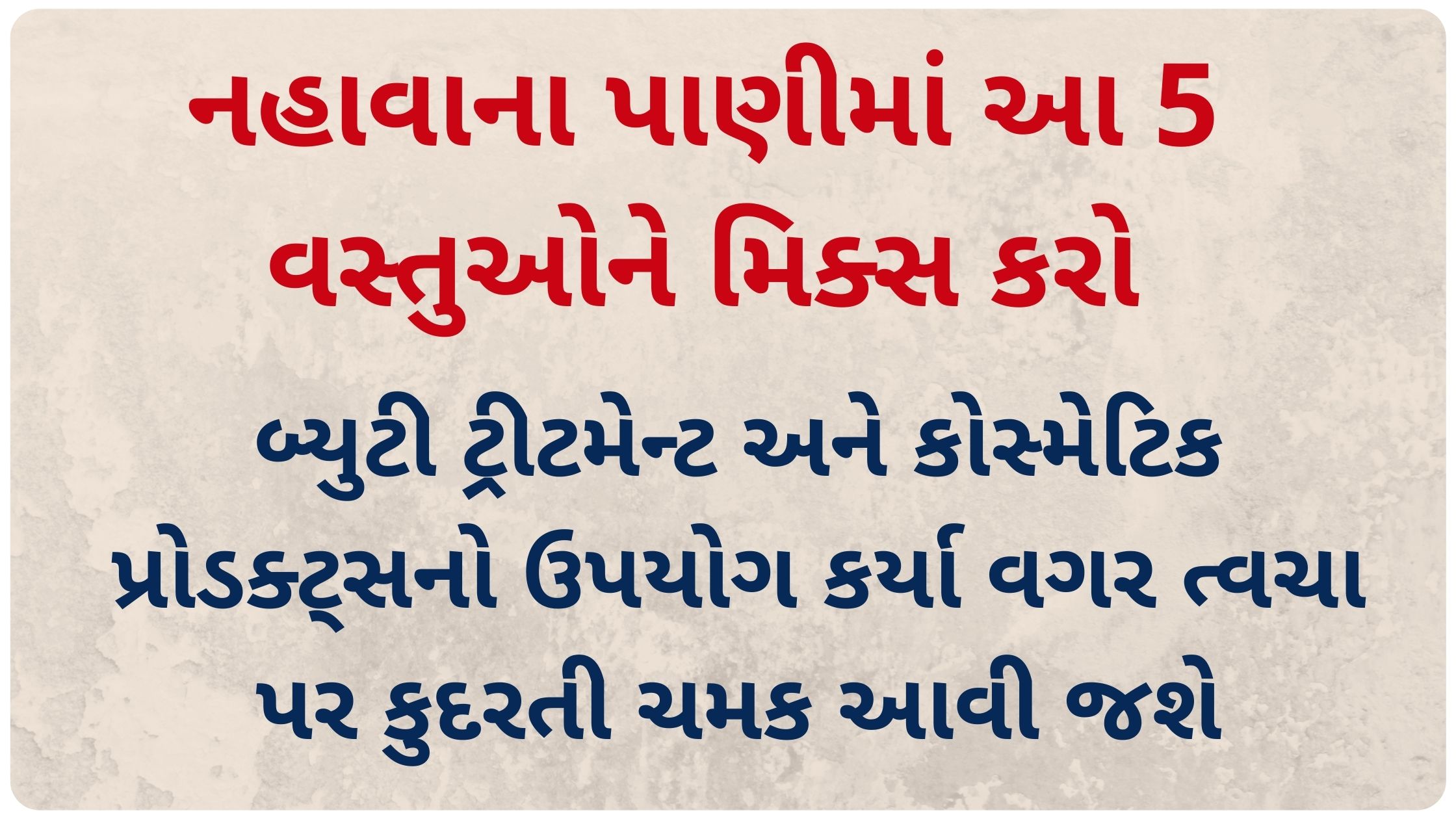 દરેક મહીલા ઇચ્છતી હોય છે કે તેની ત્વચા ચમકદાર અને સુંદર દેખાય. મહિલાઓ તેના માટે અનેક પ્રકારની બ્યુટી ટ્રીટમેન્ટ અને કોસ્મેટિક પ્રોડક્ટ્સનો ઉપયોગ કરતી હોય છે. કેટલીકવાર તો આ બધામાં ઘણા પૈસા ખર્ચે થઇ જાય છે. જો તમે તમારી ત્વચાને કેટલીક સસ્તી વસ્તુનો ઉપયોગ કરીને નિખારવા માંગો છો, તો તમારા નહાવાના પાણીમાં કેટલીક ખાસ વસ્તુઓને ઉમેરીને તમે ત્વચા પર કુદરતી ચમક મેળવી શકો છો.