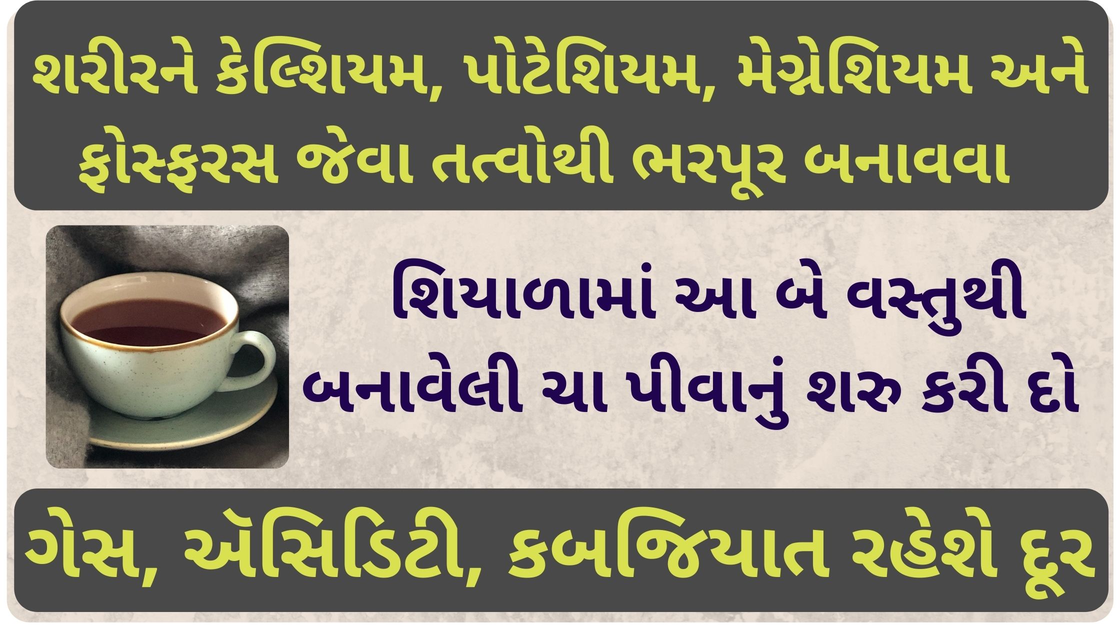 તો અહીંયા જણાવેલી વસ્તુઓથી ચા બનાવવાથી આપણું શરીર કેલ્શિયમ, પોટેશિયમ, મેગ્નેશિયમ અને ફોસ્ફરસ જેવા તત્વોથી ભરપૂર થઈ જાય છે. આ વસ્તુઓથી બનાવેલી ચા આપણા હાડકા માટે ખૂબ જ ફાયદાકારક છે. પોટેશિયમ જે આપણા શરીરના તમામ રોગોને દુર કરે છે.