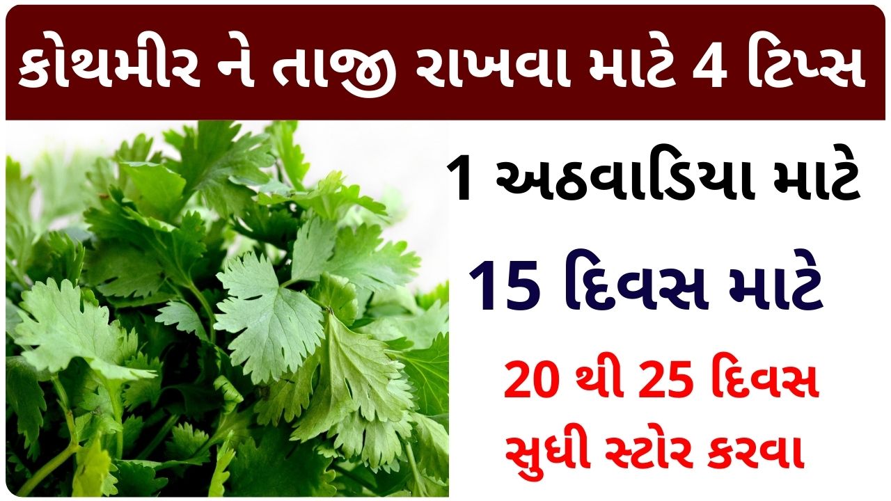 તો ઉપર જણાવેલ આ 4 ટીપ્સ તમને કોથમીરને લાંબા સમય સુધી સ્ટોર કરવામાં મદદ કરશે. જો તમને આ જાણકરી ગમી હોય તો, આવી જ વધારે જાણકારી મેળવવા માટે રસોઈનીદુનિયા સાથે જોડાયેલા રહો.