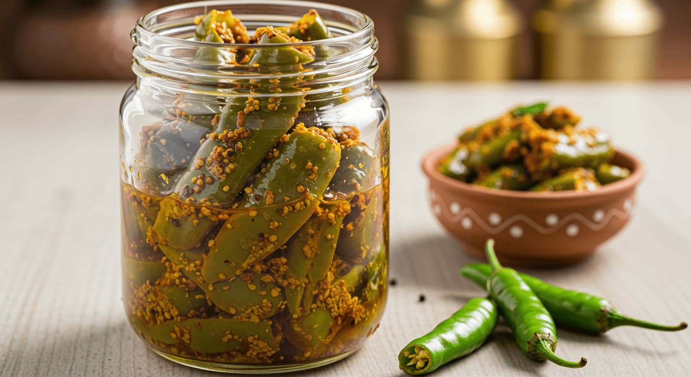 શું તમે પણ ઘરે ચટપટું અને સ્વાદિષ્ટ લીલા મરચાંનું અથાણું (Green Chilli Pickle) બનાવવા માંગો છો? જો હા, તો આ Green Chilli Pickle Recipe તમારા માટે જ છે! ભારતીય ભોજનમાં અથાણાંનું એક વિશેષ સ્થાન છે, અને લીલા મરચાંનું અથાણું ભોજનમાં એક અનોખો સ્વાદ અને તીખાશ ઉમેરે છે. આજે અમે તમને આ અથાણું બનાવવાની સંપૂર્ણ, સ્ટેપ-બાય-સ્ટેપ રેસીપી જણાવીશું, જેથી તમે કોઈપણ ભૂલ વગર તમારા ઘરે જ રેસ્ટોરન્ટ જેવું અથાણું બનાવી શકશો.