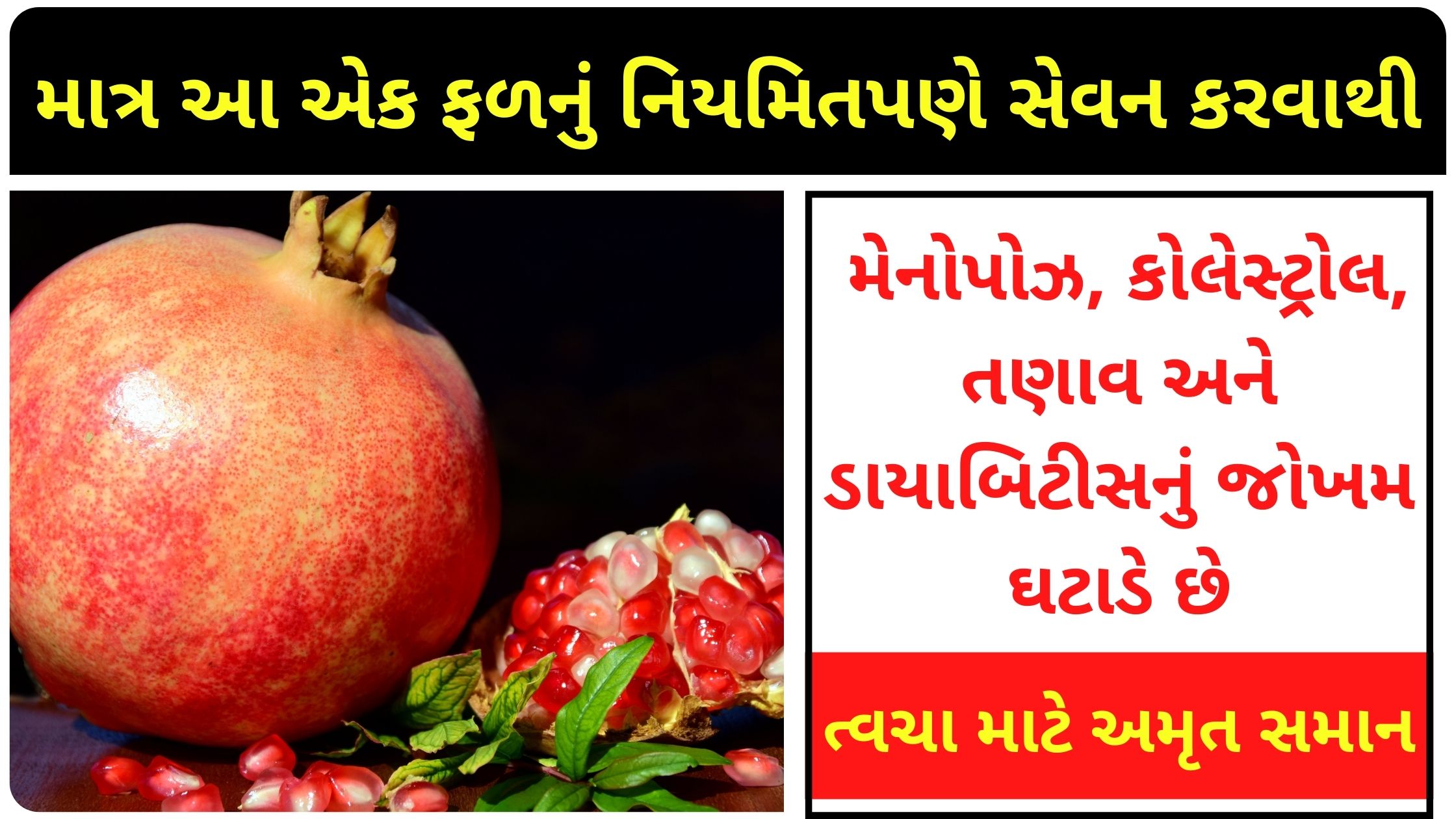 મેનોપોઝના લક્ષણો ઘટાડે છે : તેમાં ફાયટોએસ્ટ્રોજેન હોય છે જે હોટ ફ્લૅશ અને રાત્રે થતો પરસેવો ઘટાડવામાં મદદ કરે છે. દાડમમાં અસંતૃપ્ત ફેટી એસિડ્સ, લિનોલેનિક એસિડ અને ફાયટોએસ્ટ્રોજેન હોય છે જે ડોકટરો માને છે કે મેનોપોઝના લક્ષણોને સુધારવામાં મદદ કરી શકે છે. આ સિવાય દાડમમાં શક્તિશાળી એન્ટીઑકિસડન્ટો હોય છે જે હૃદયને સુરક્ષિત કરી શકે છે અને આ દરેક મેનોપોઝલ મહિલા માટે એક ચિંતાનો વિષય છે.